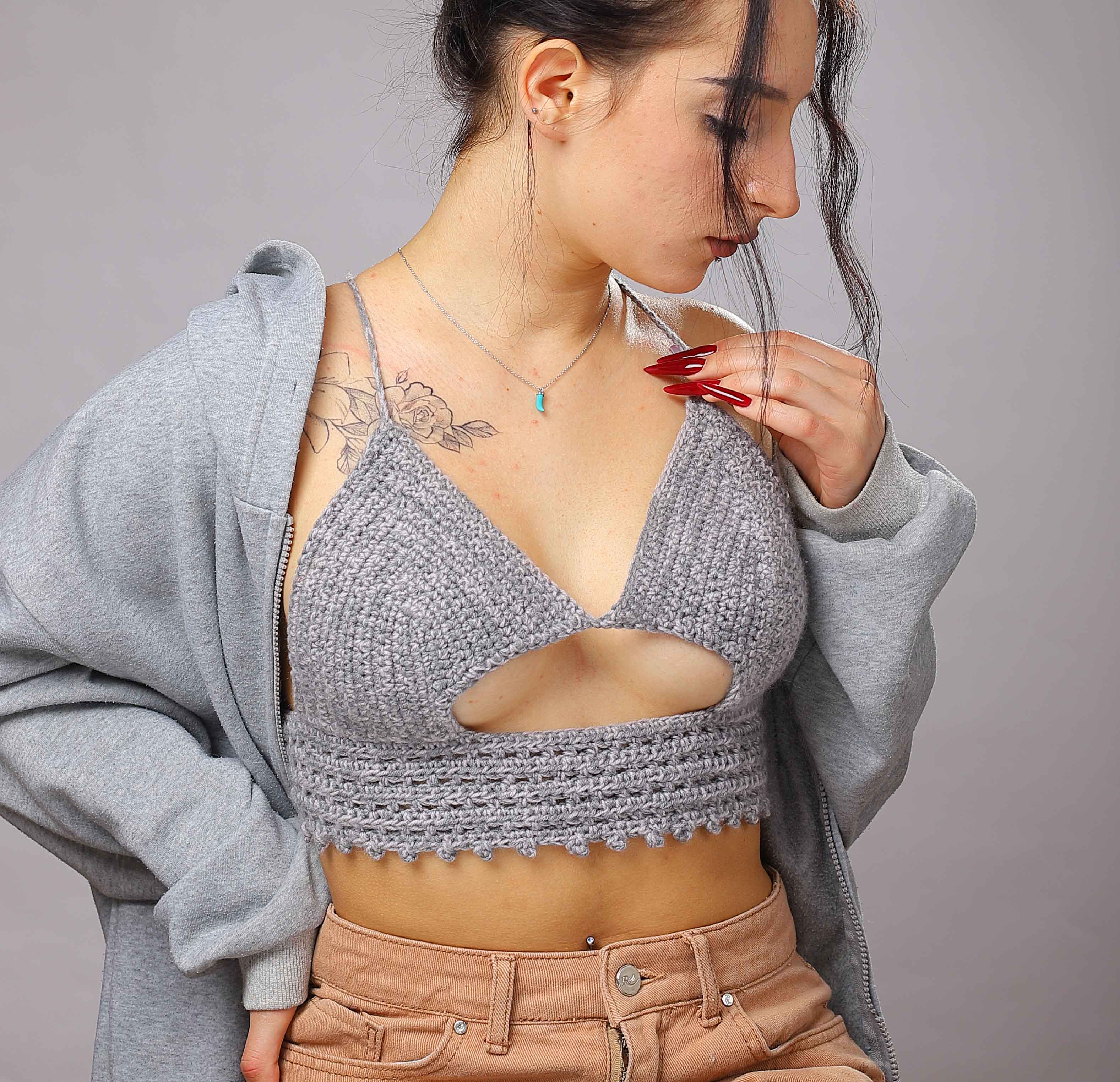 Великолепный, оригинальный ТОП серого цвета..